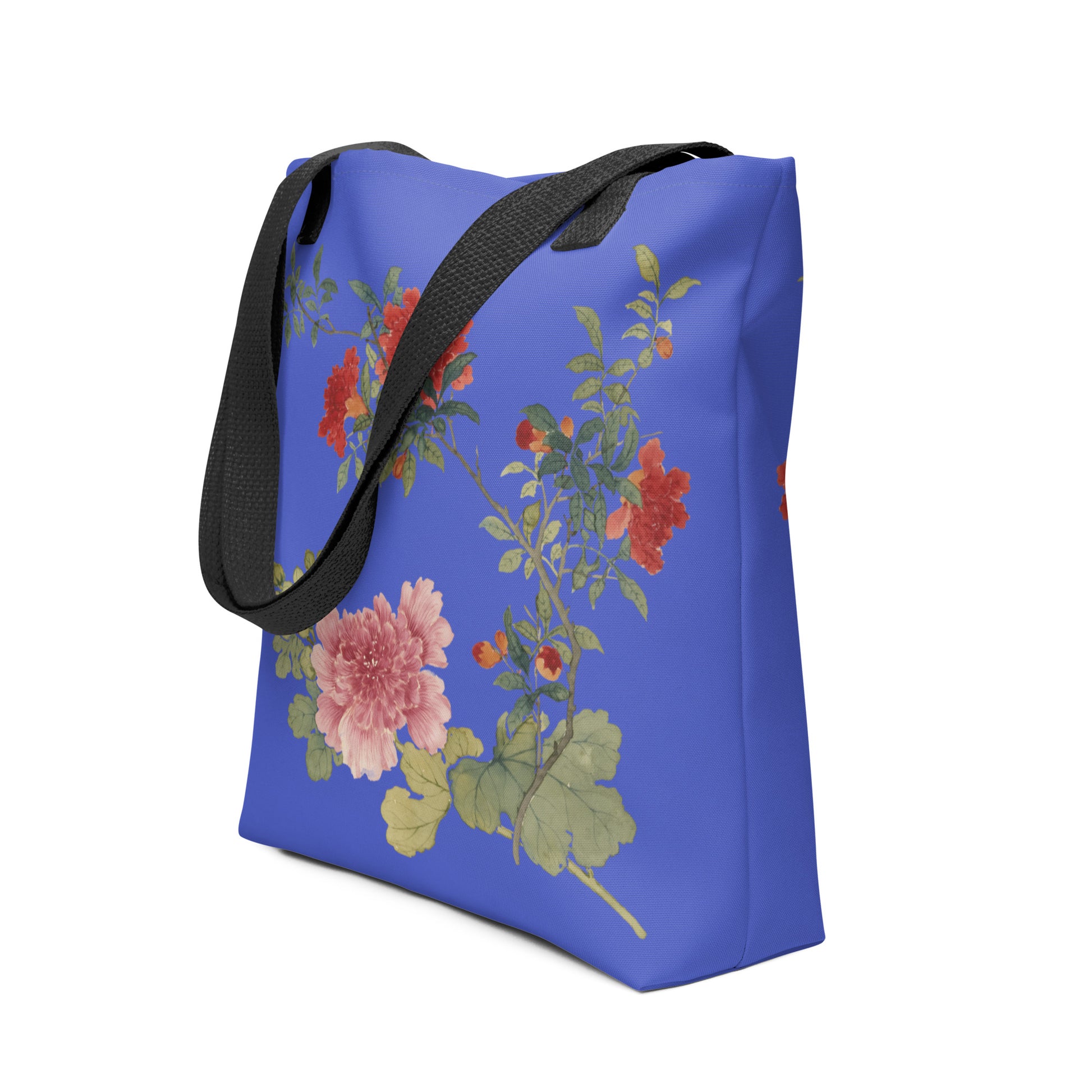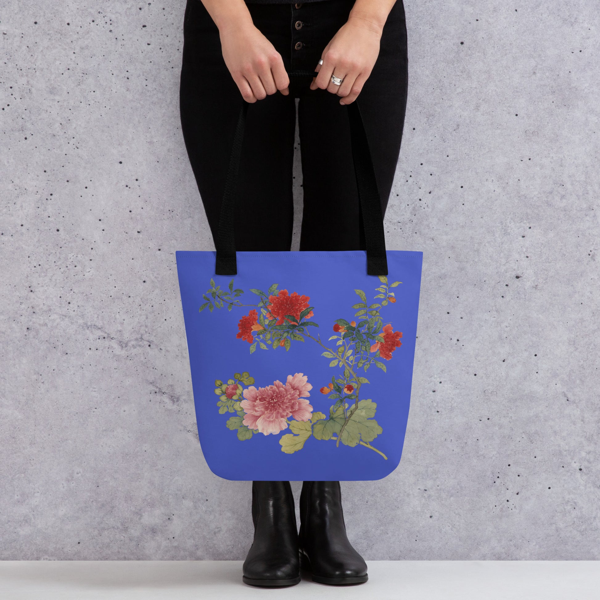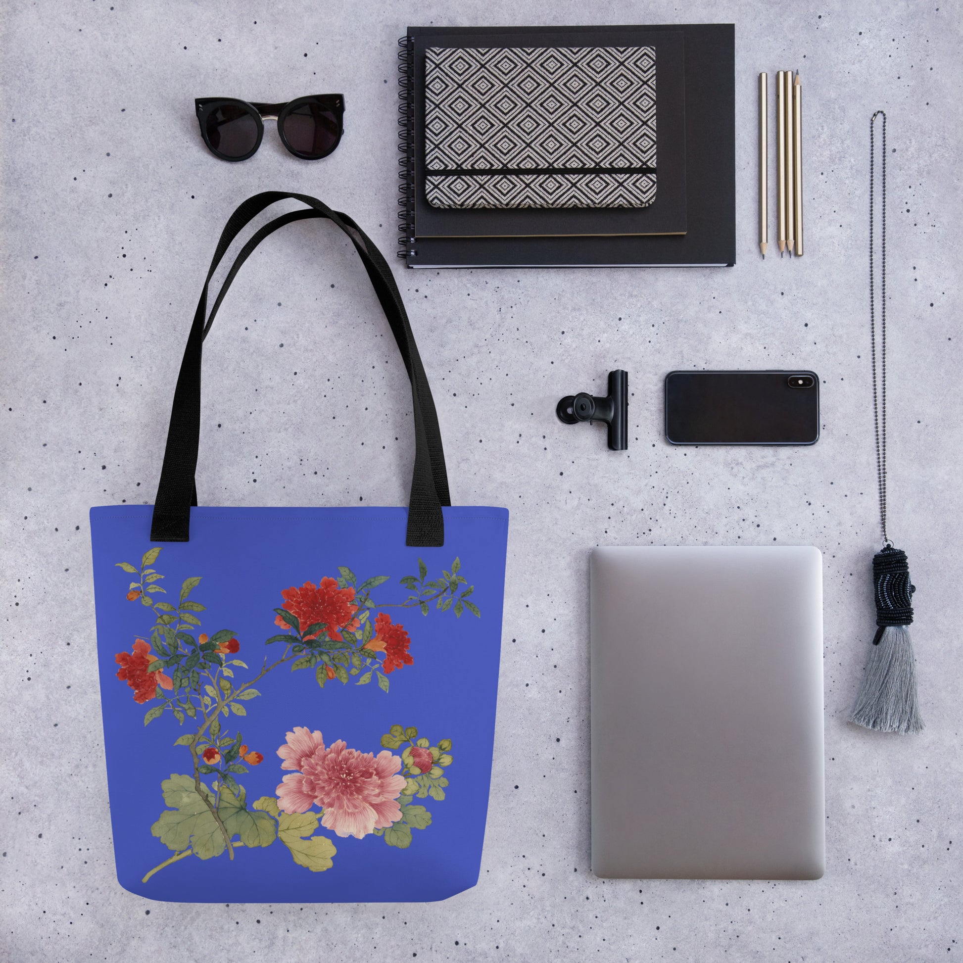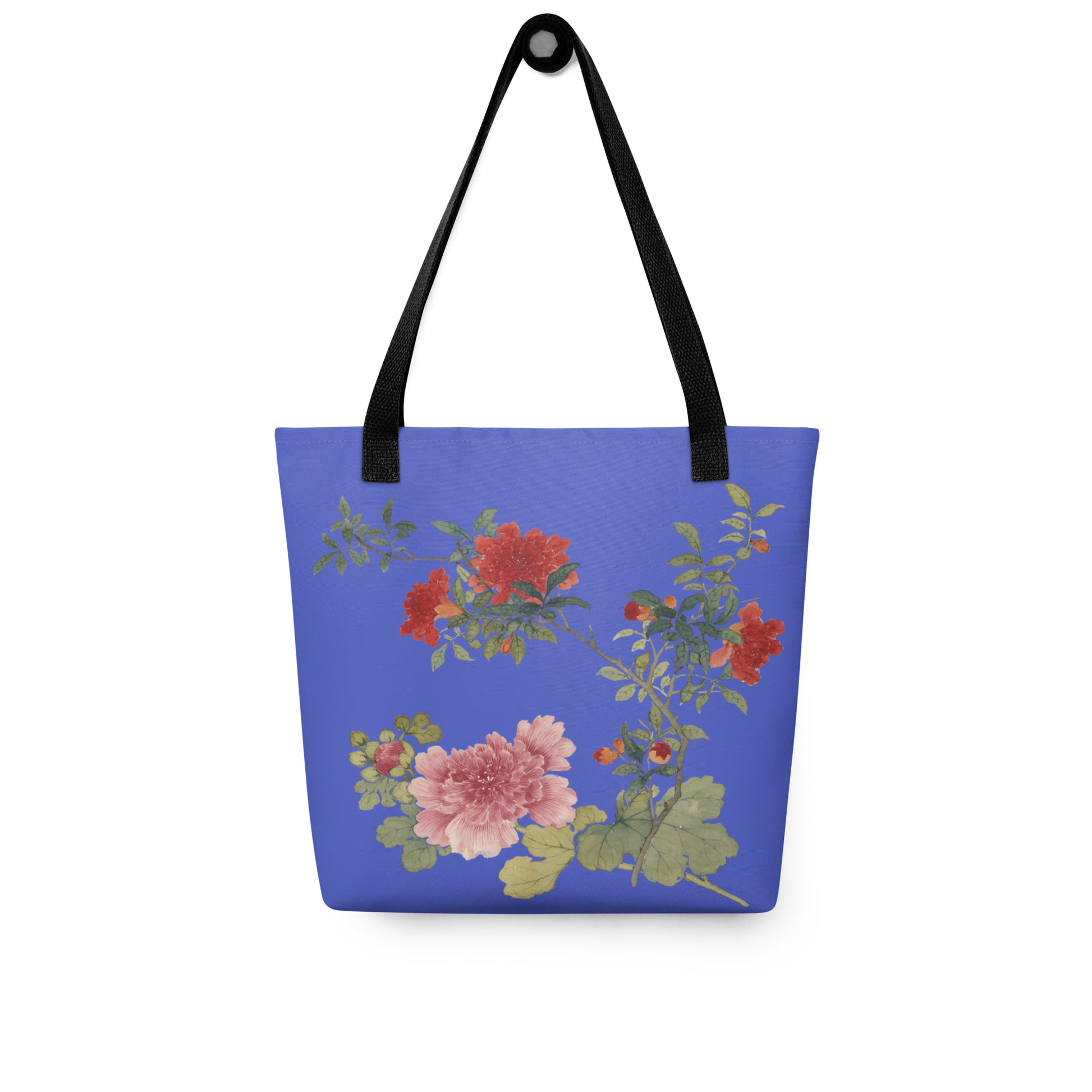 12月の花神様|Hollyhock and Pomegranate in Bloom|トートバッグ|ロイヤルブルー