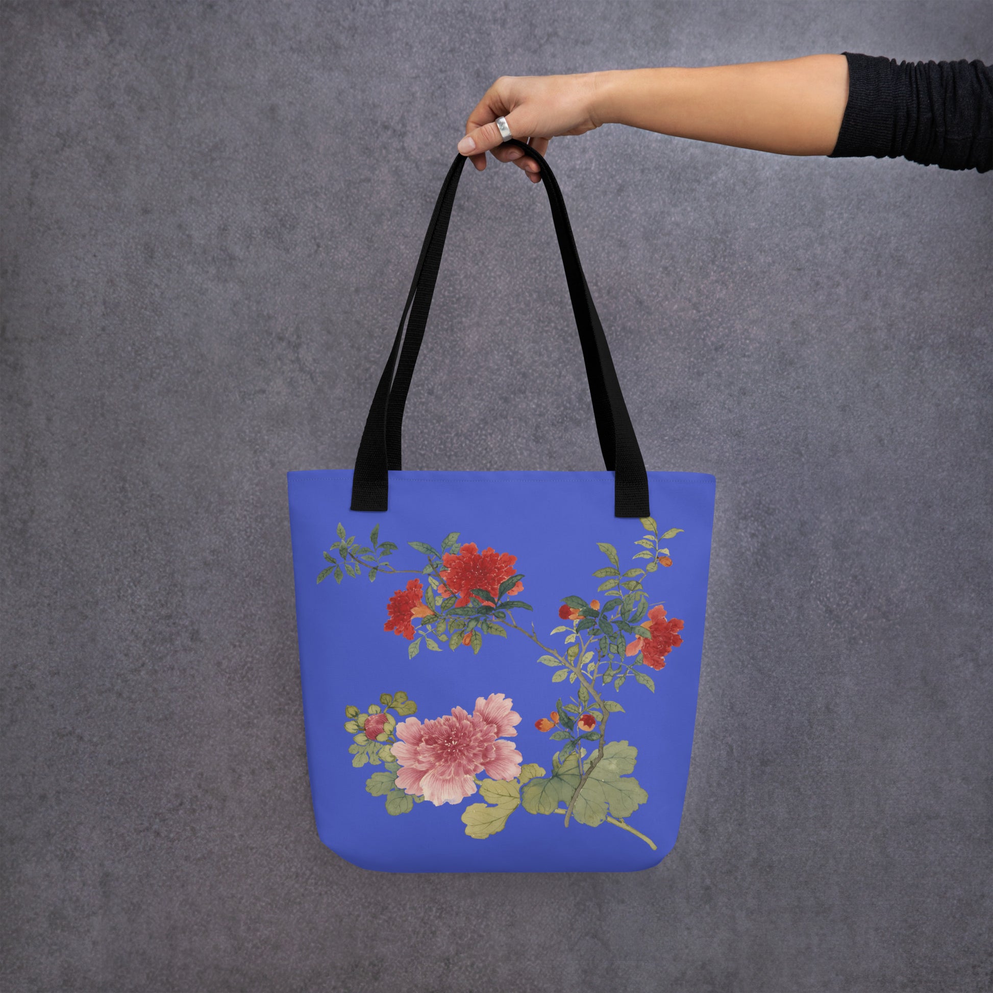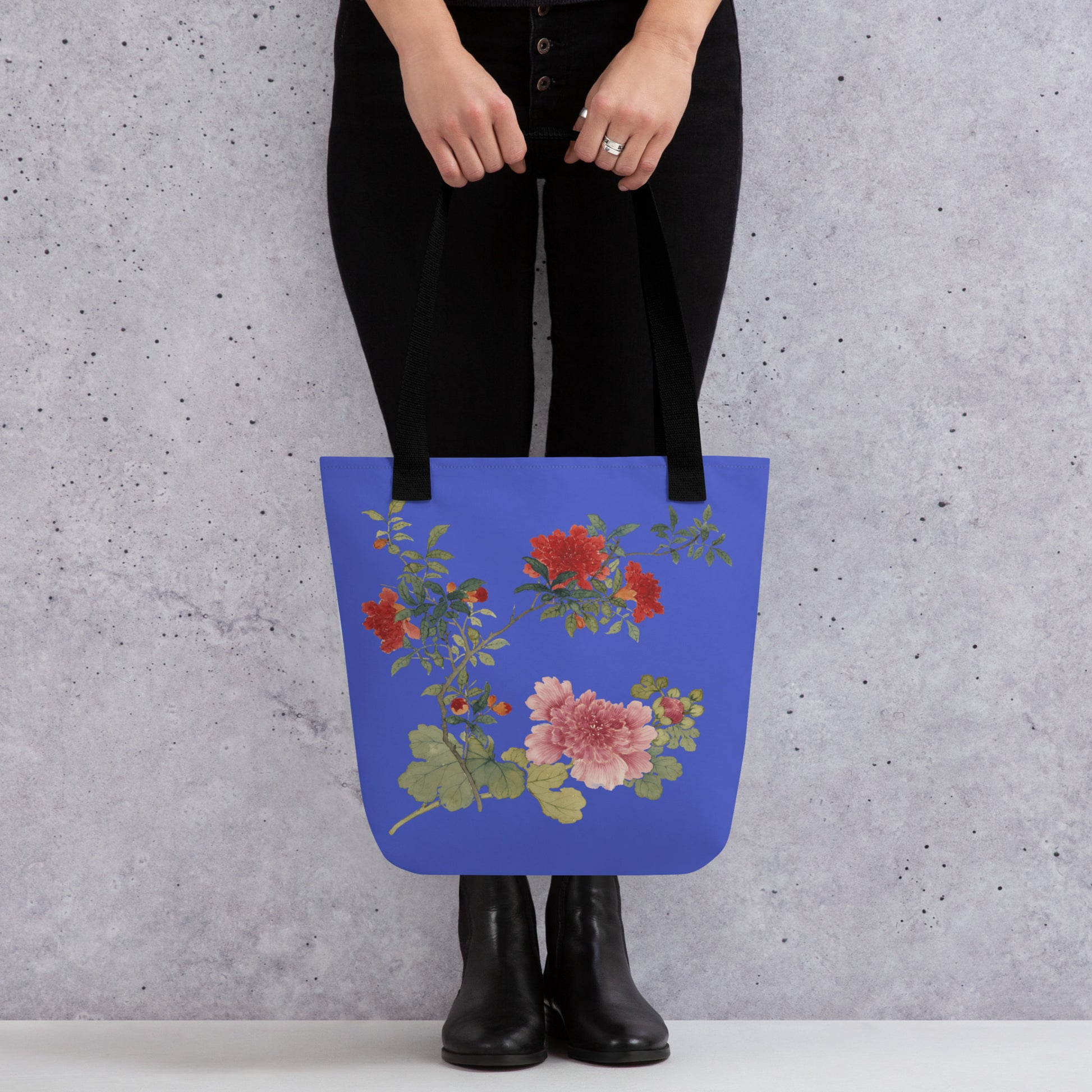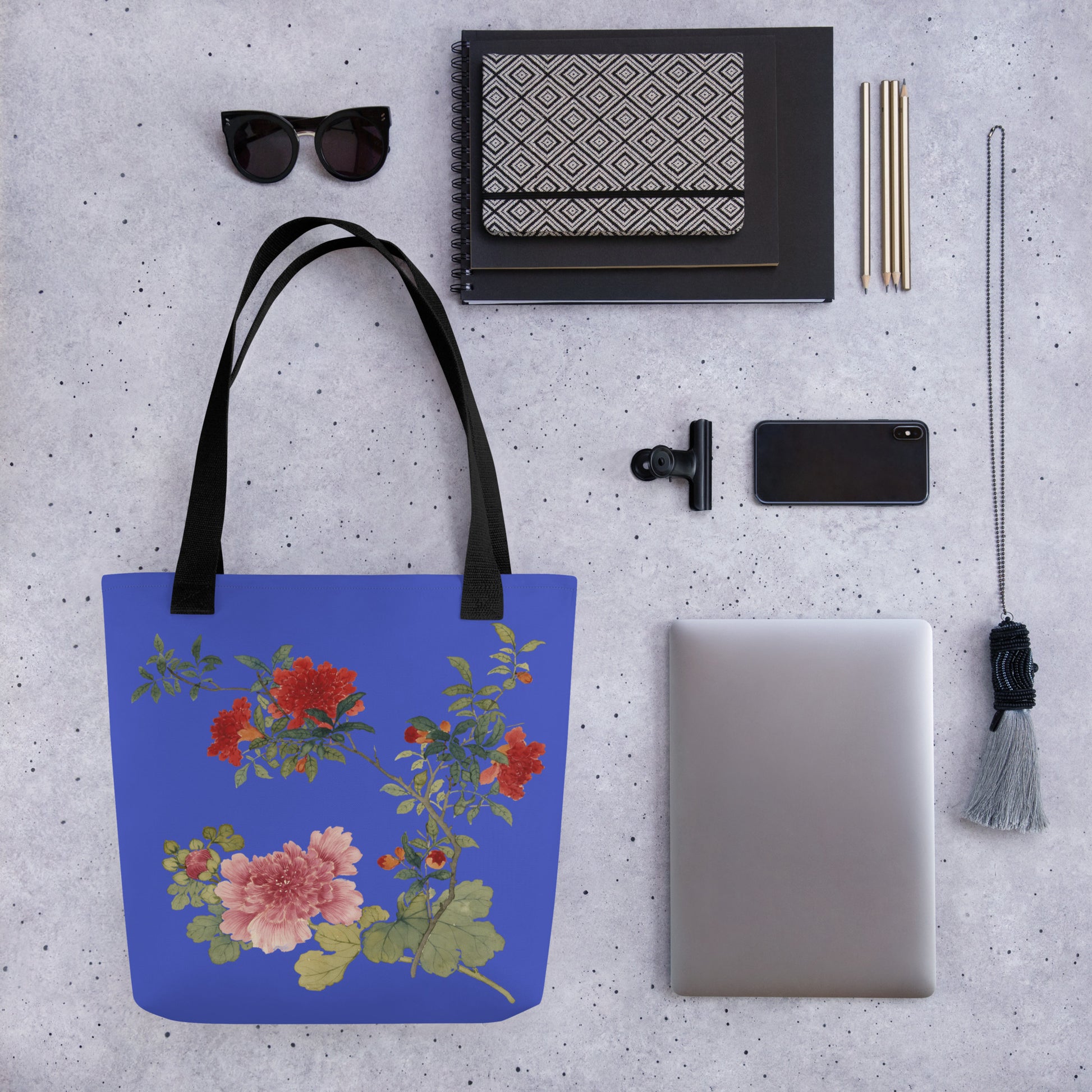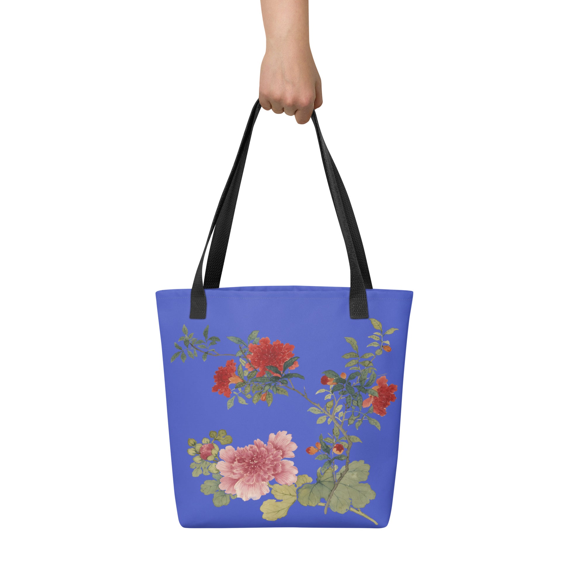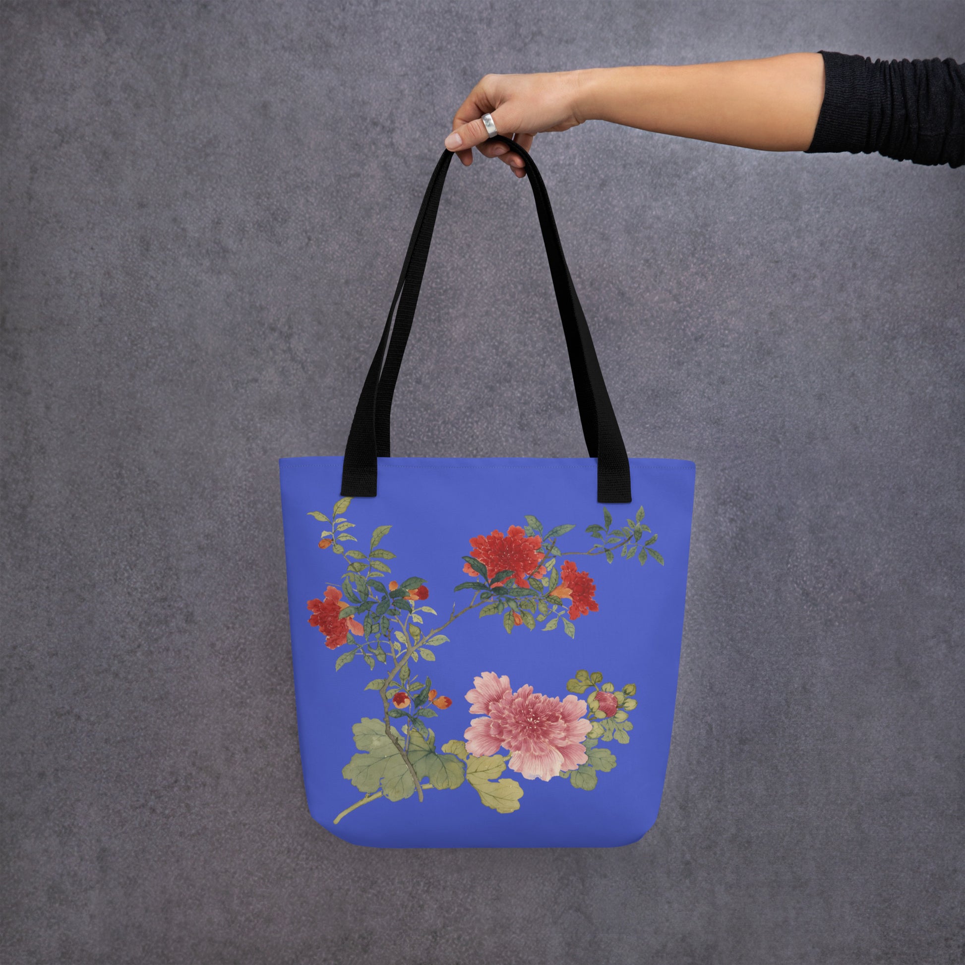 12月の花神様|Hollyhock and Pomegranate in Bloom|トートバッグ|ロイヤルブルー