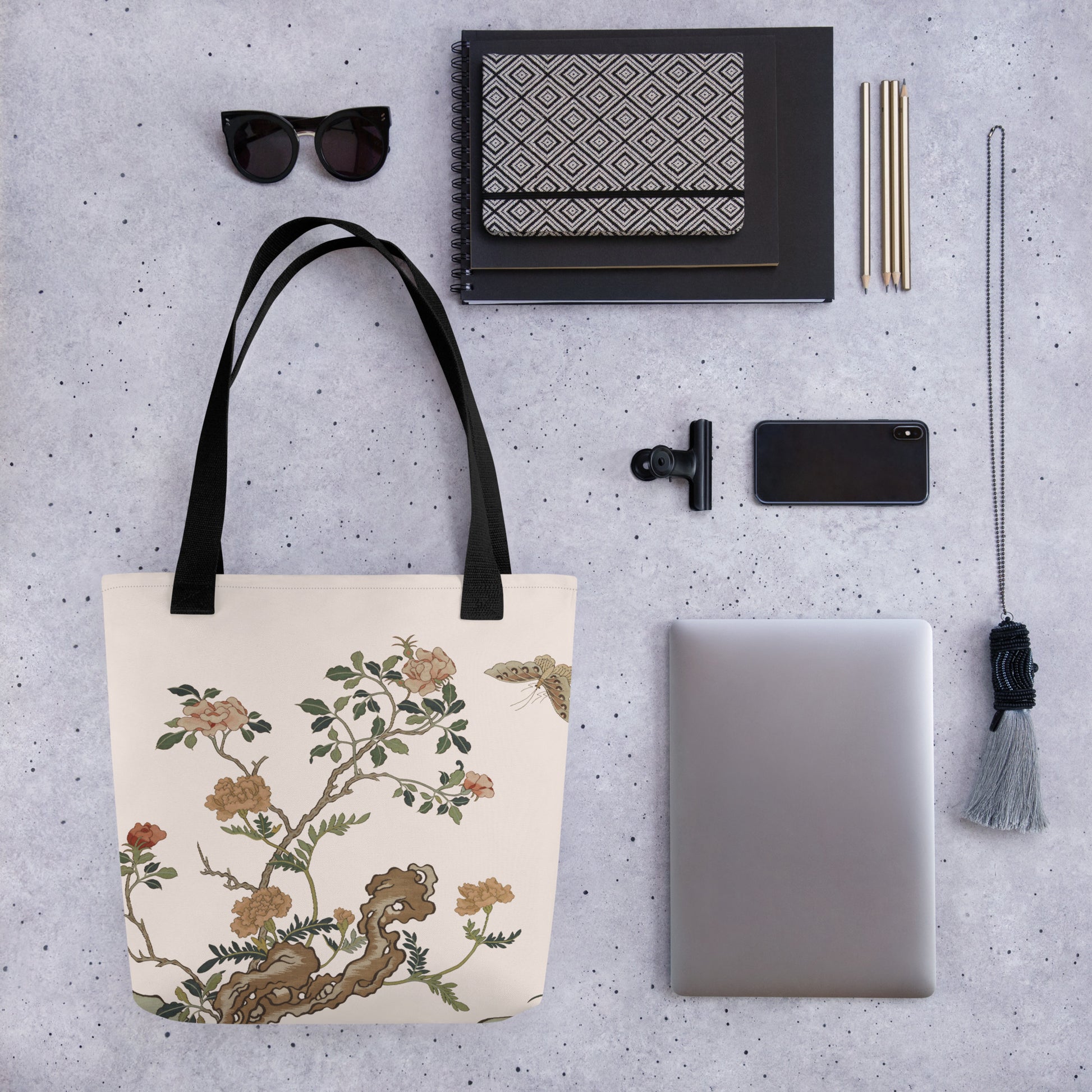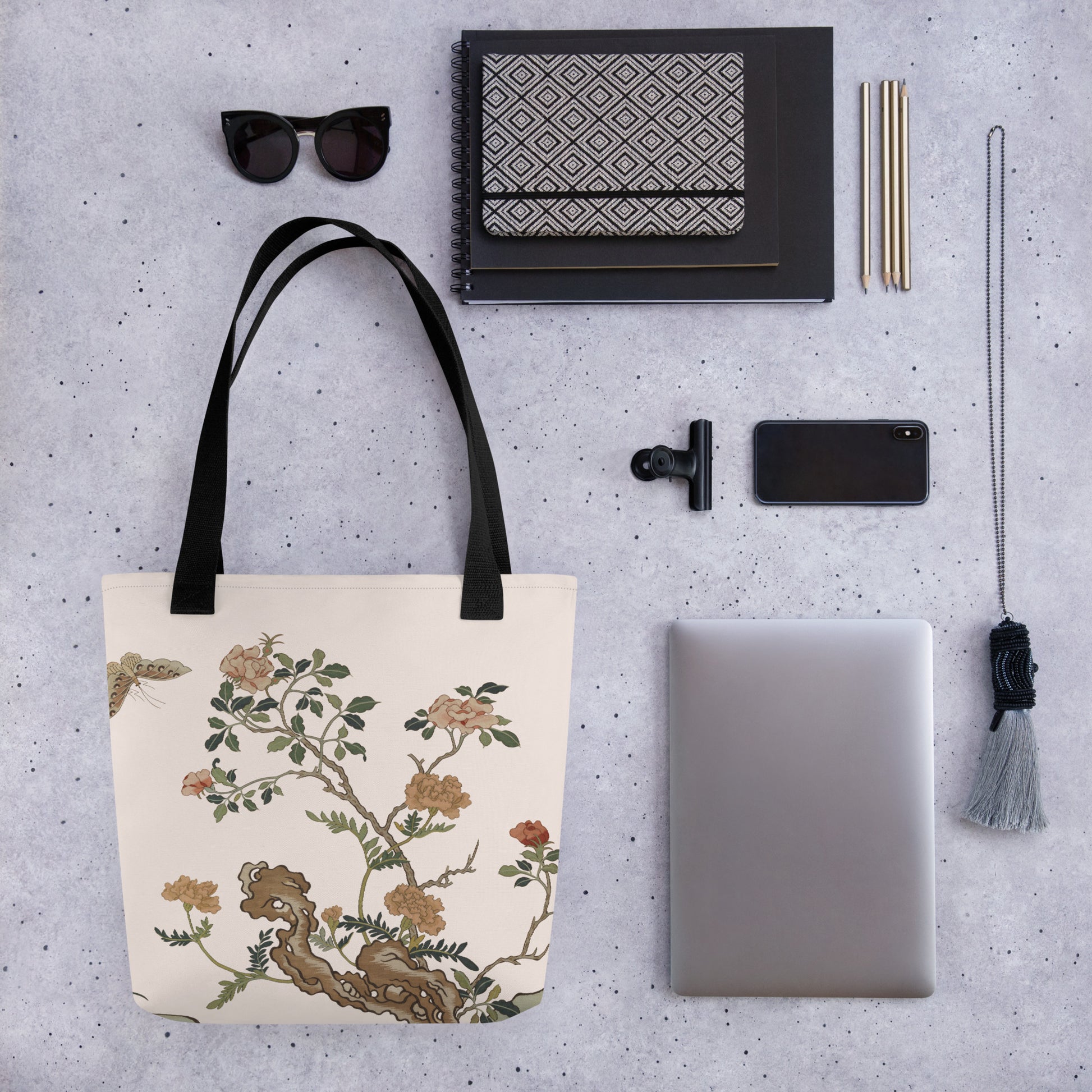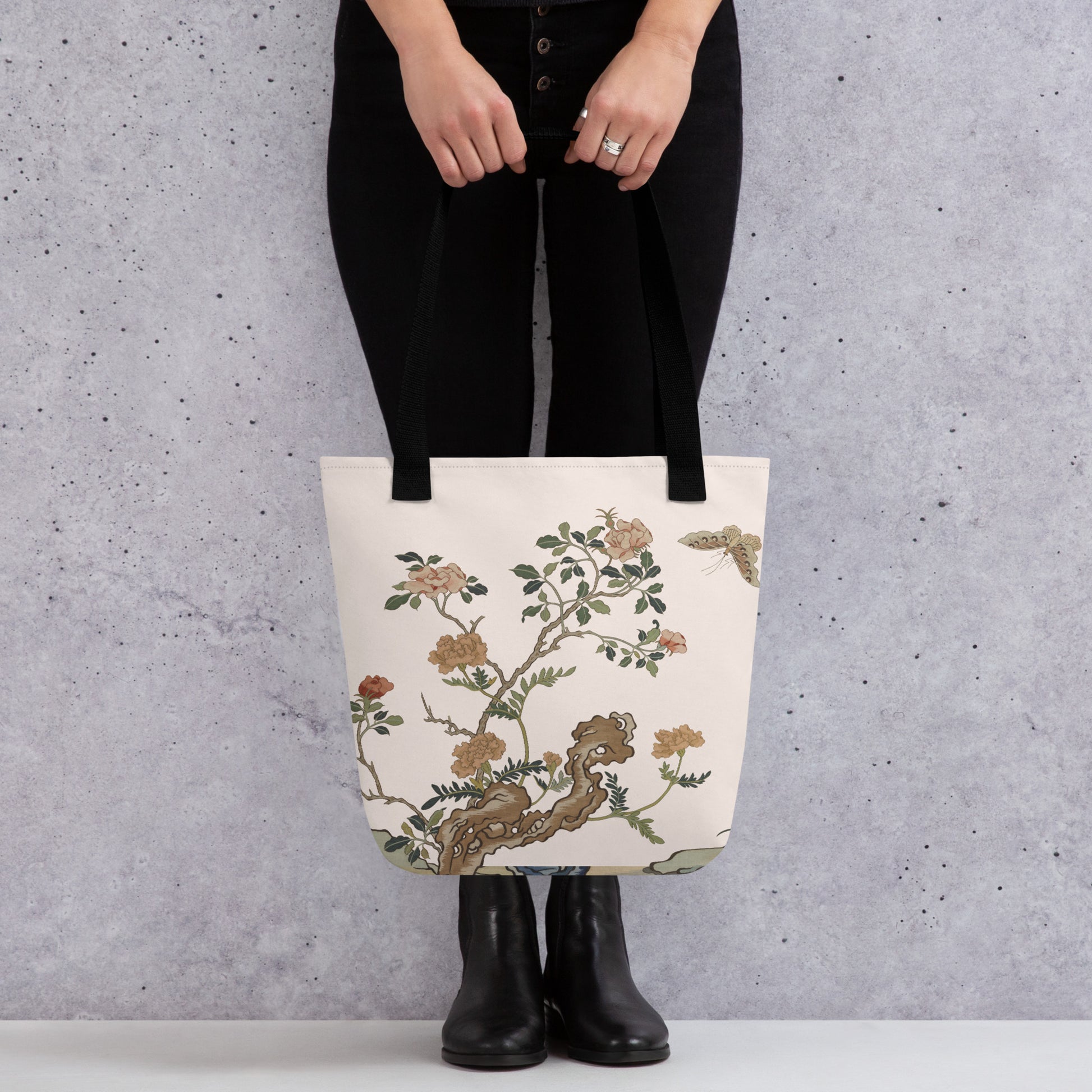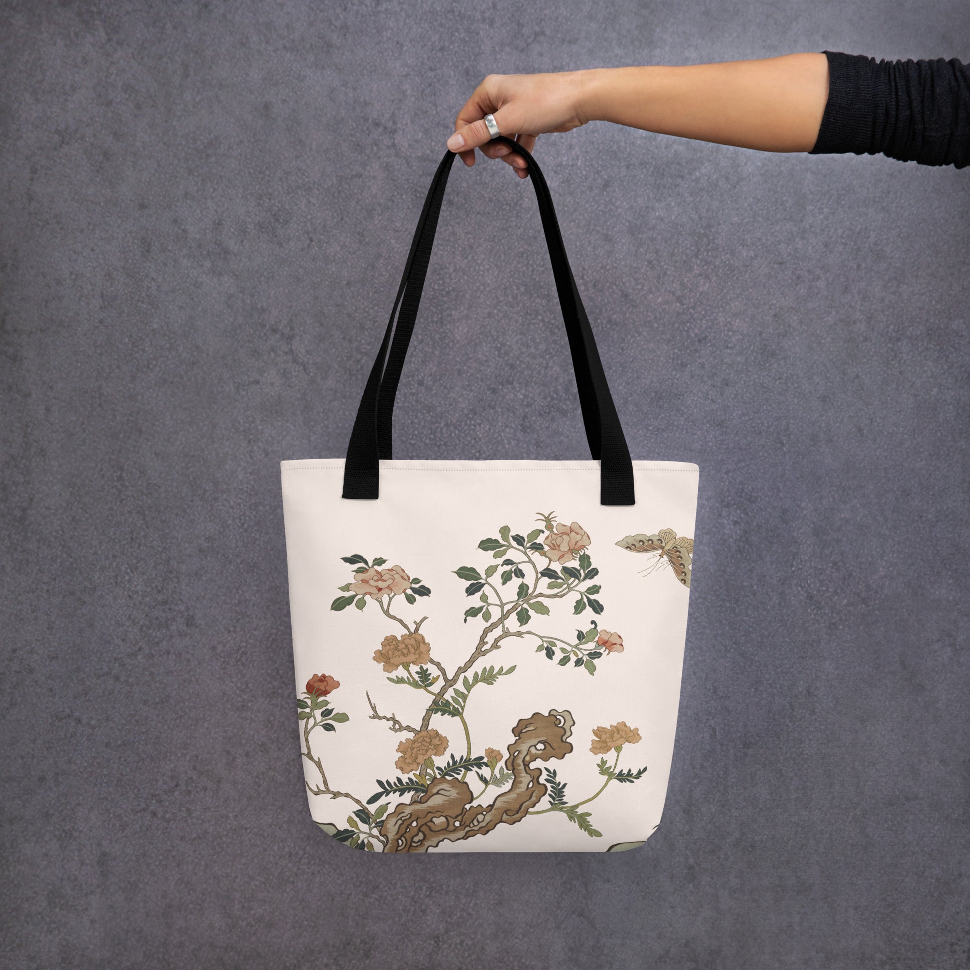 刻丝花卉|蝴蝶月季|手提袋(托特包)|鱼肚白
