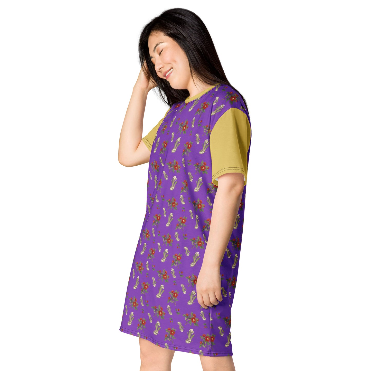 十二月花神|水仙与山茶盛放|T恤连衣裙|无缝印花|紫色