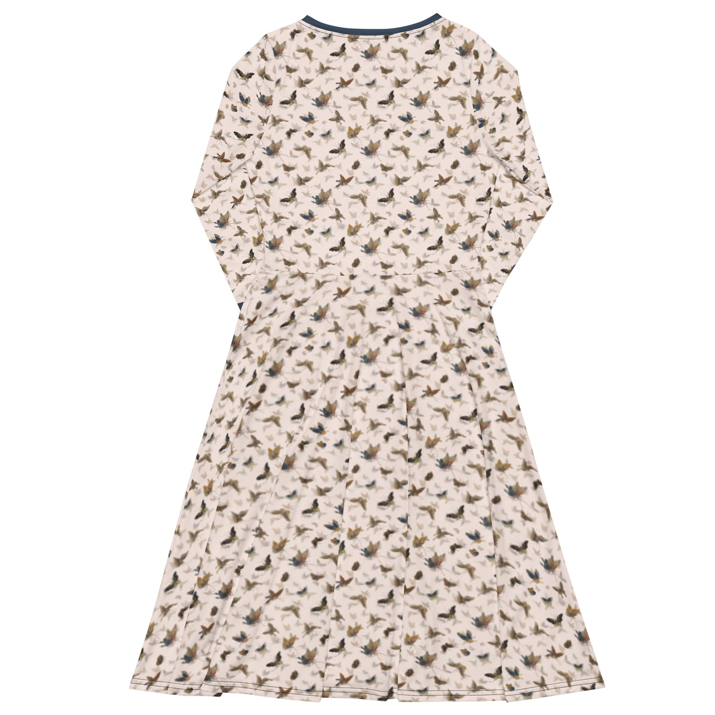 蝶舞翩翩|长袖中长连衣裙|鱼肚白