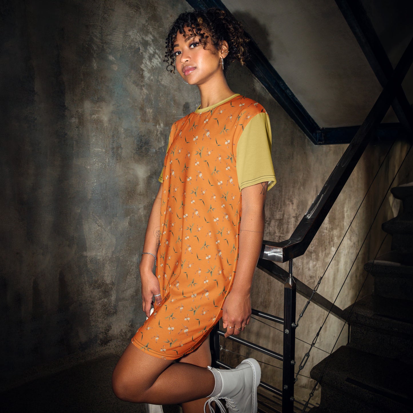 十二月花神|红梅与翠竹|T恤连衣裙|无缝印花|橙色