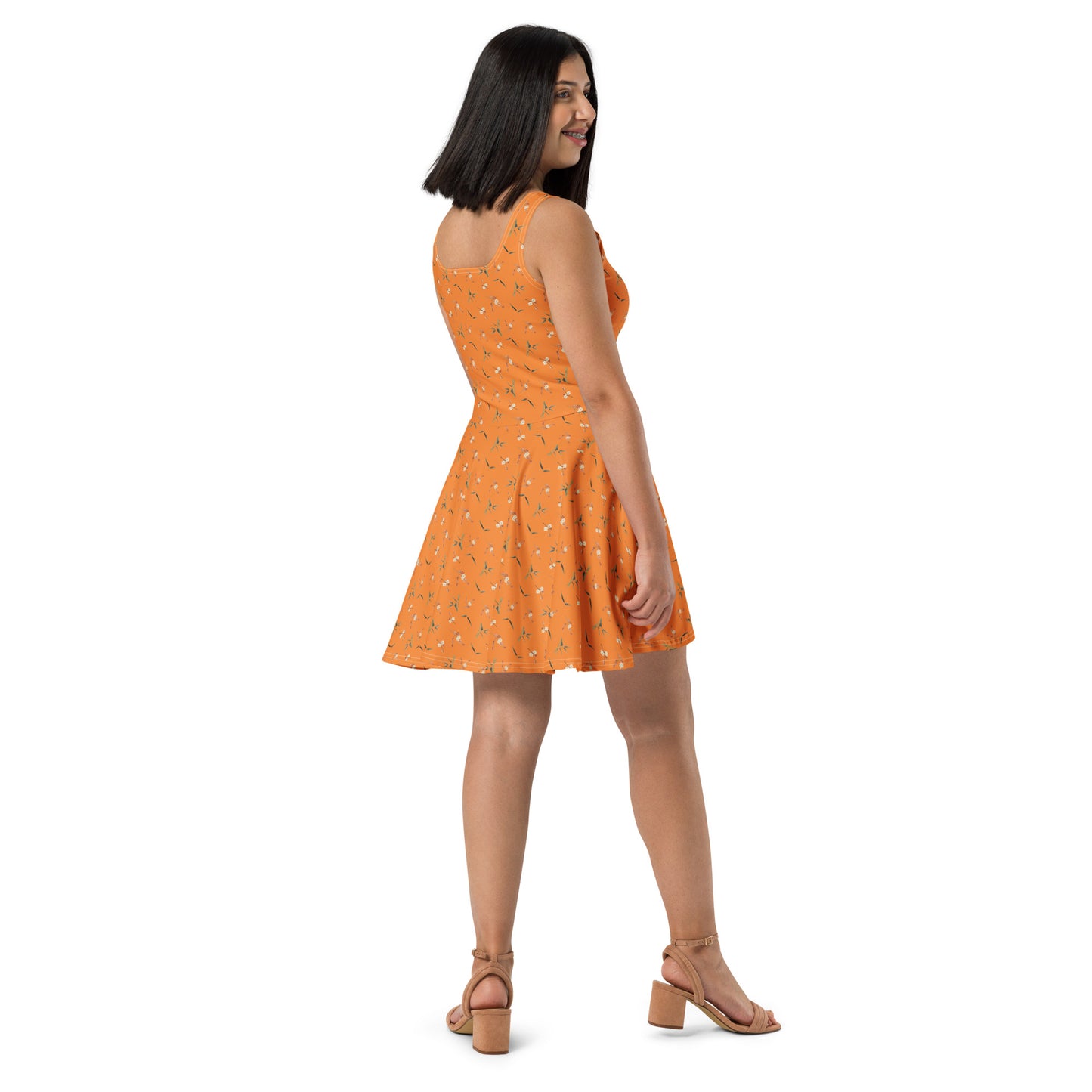 十二月花神|红梅与翠竹|滑板连衣裙|无缝印花|橙色