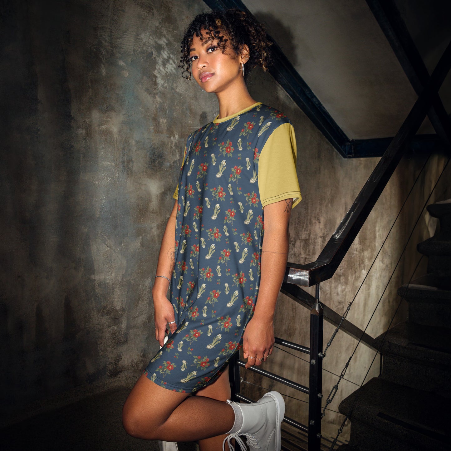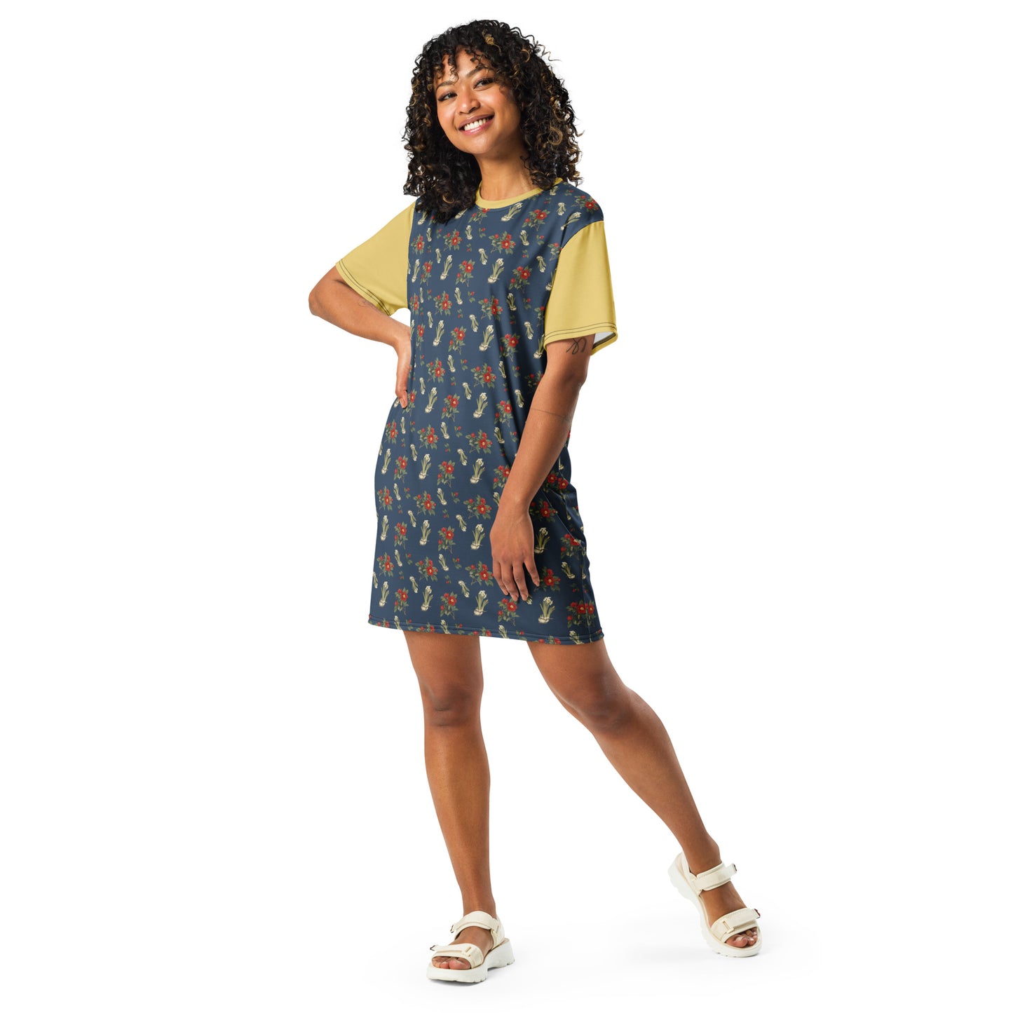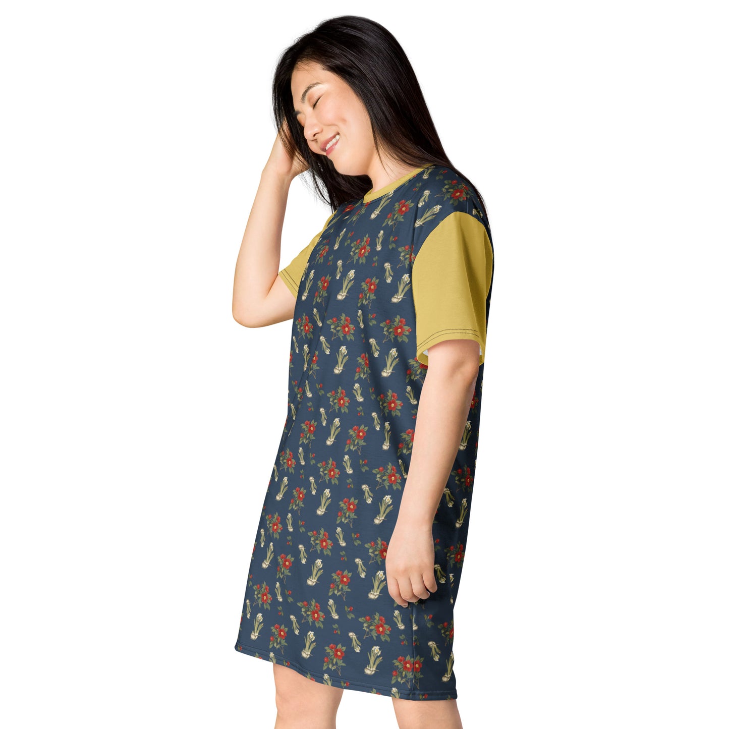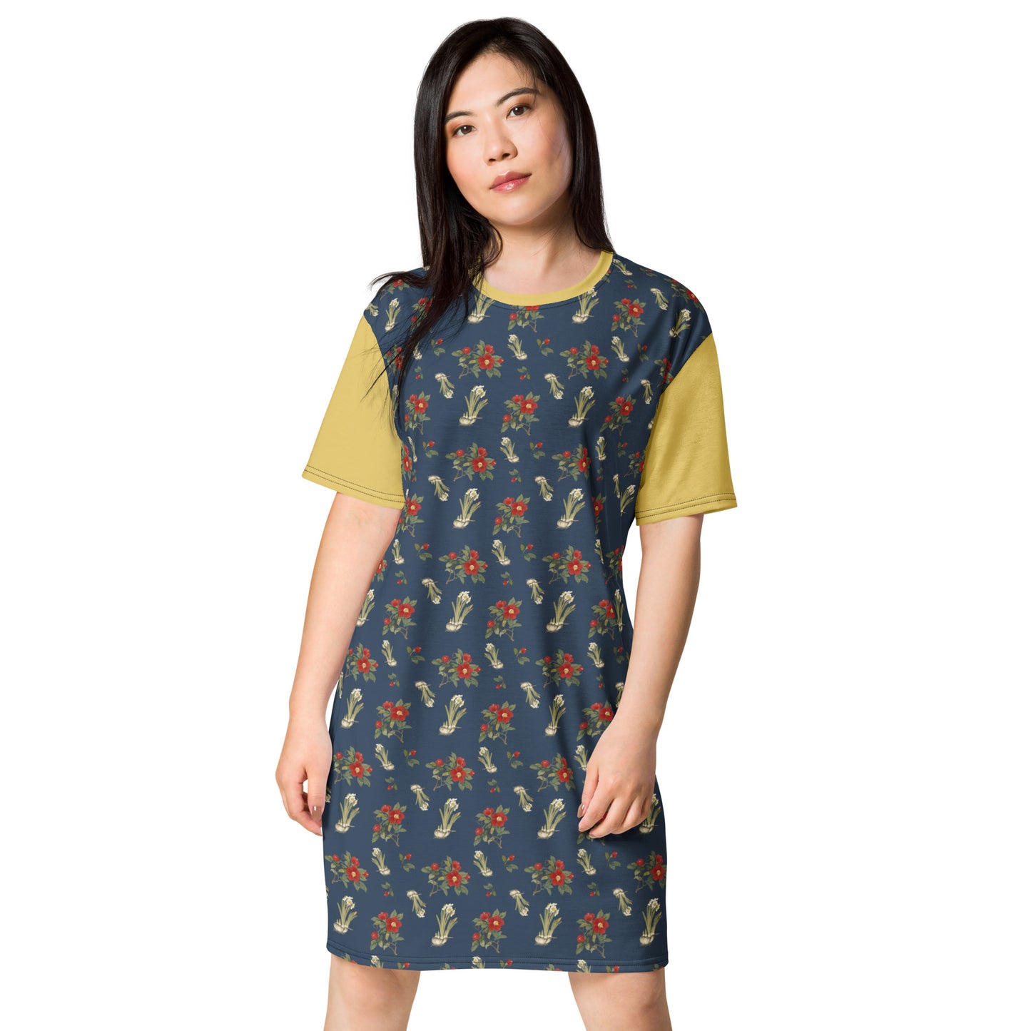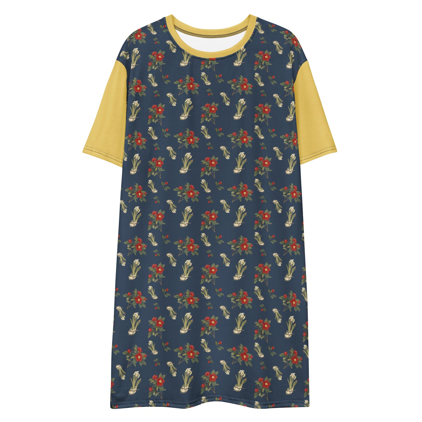 十二月花神|水仙与山茶盛放|T恤连衣裙|无缝印花|黛蓝