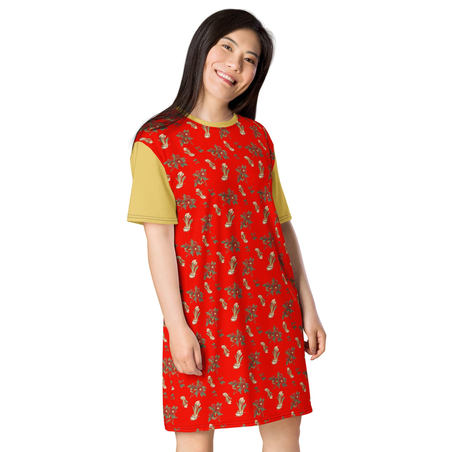 十二月花神|水仙与山茶盛放|T恤连衣裙|无缝印花|石榴红