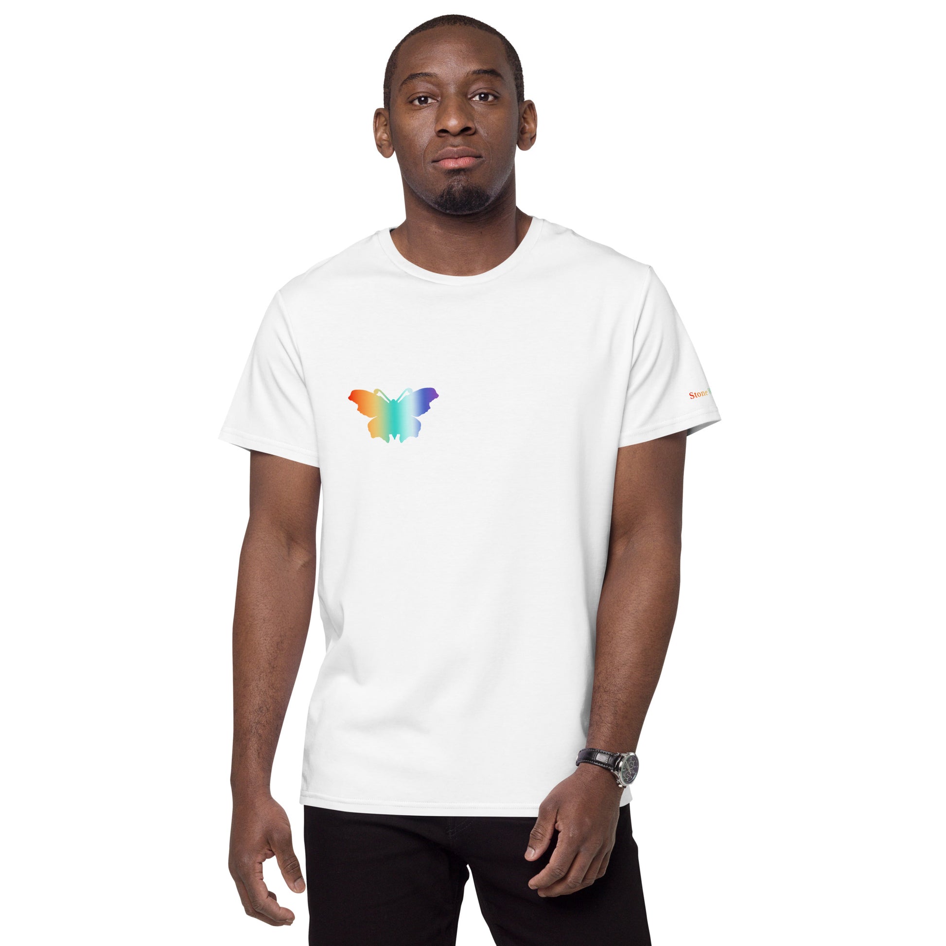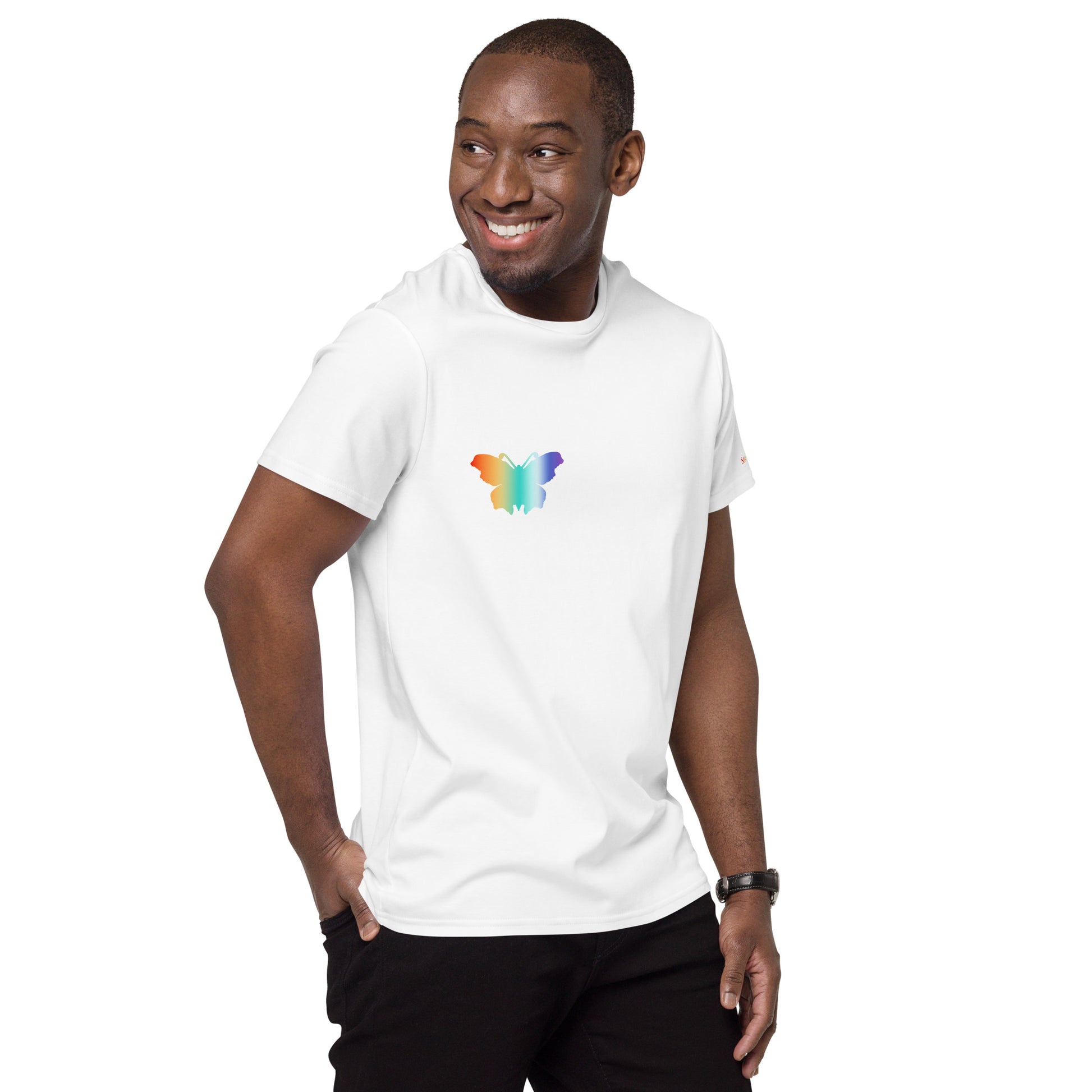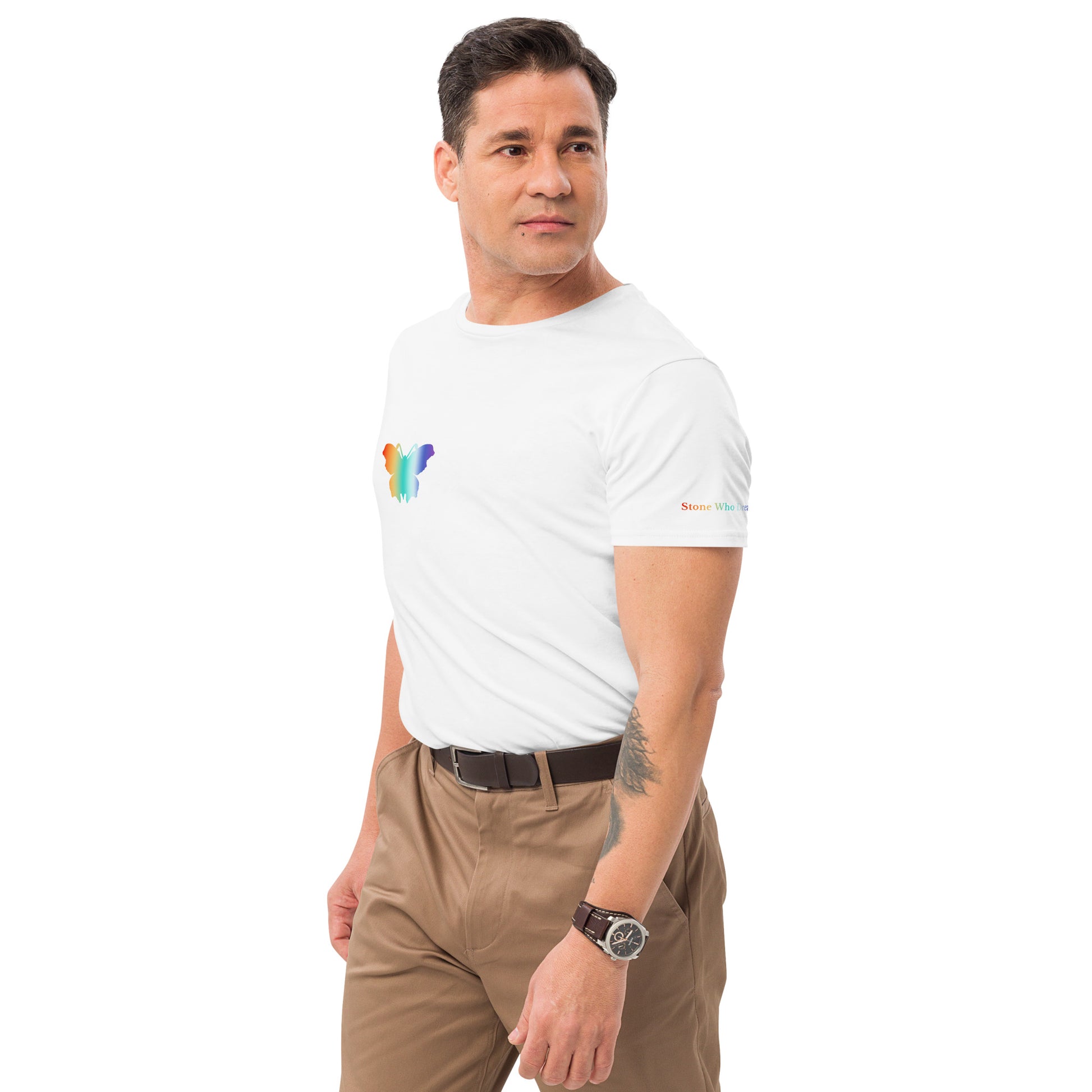 Logo系列|白色男士高級匹馬棉T恤|彩虹前右