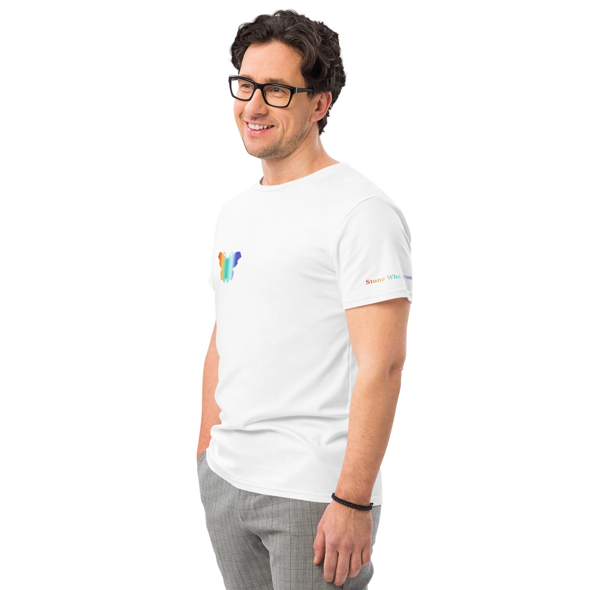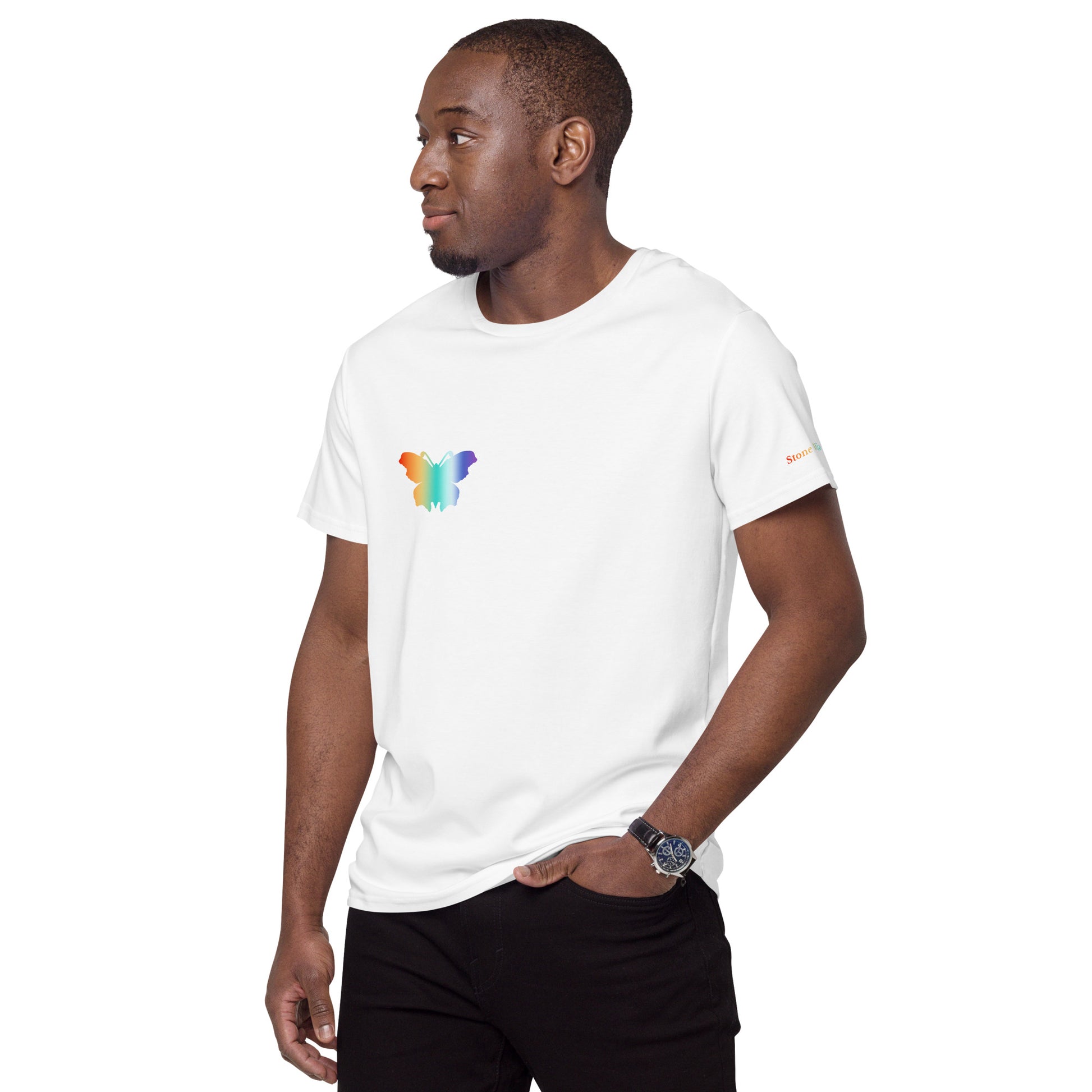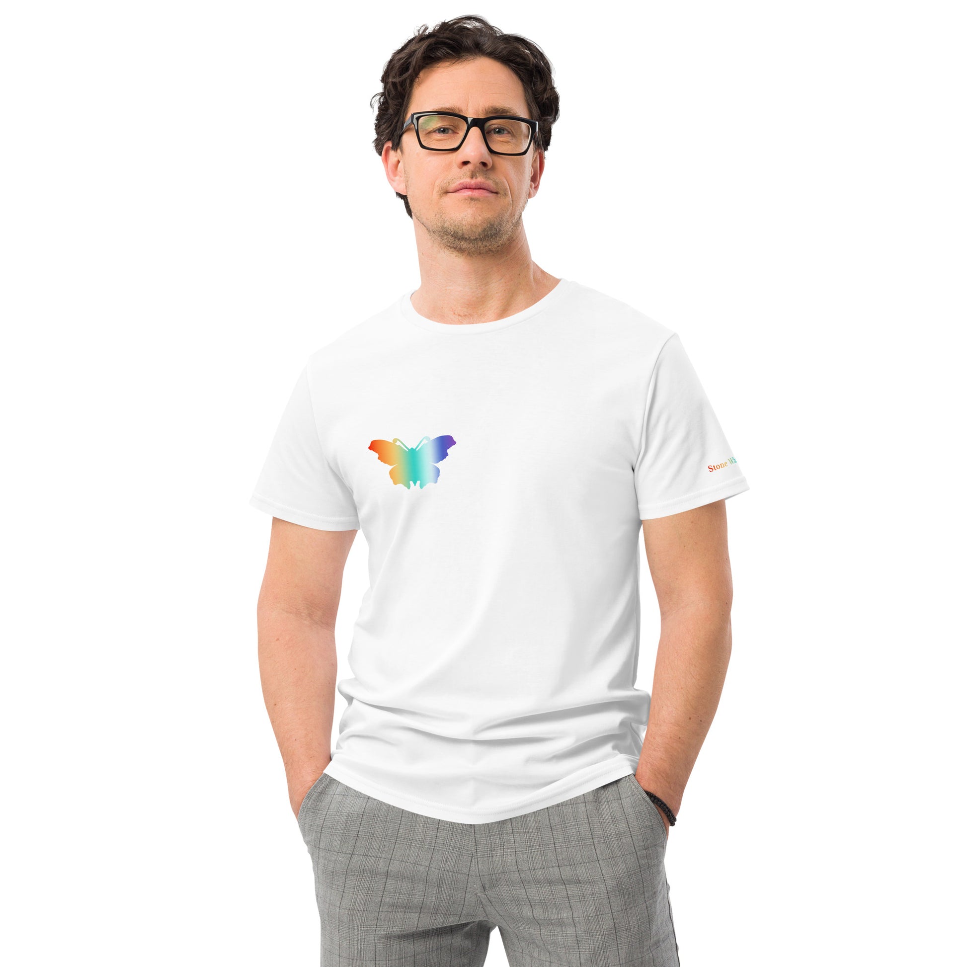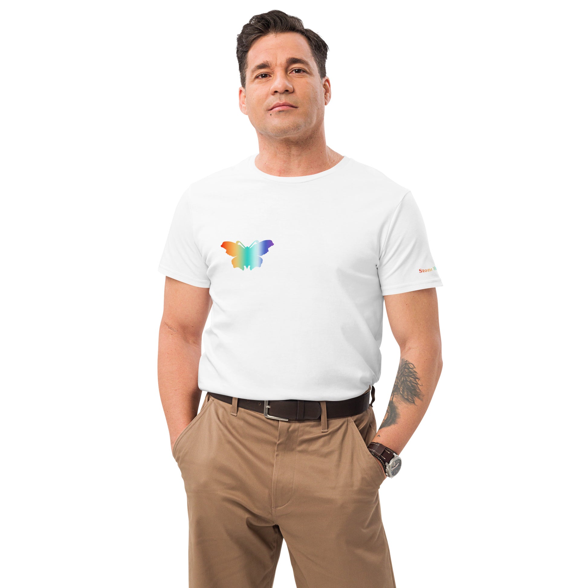 Logo系列|白色男士高級匹馬棉T恤|彩虹前右